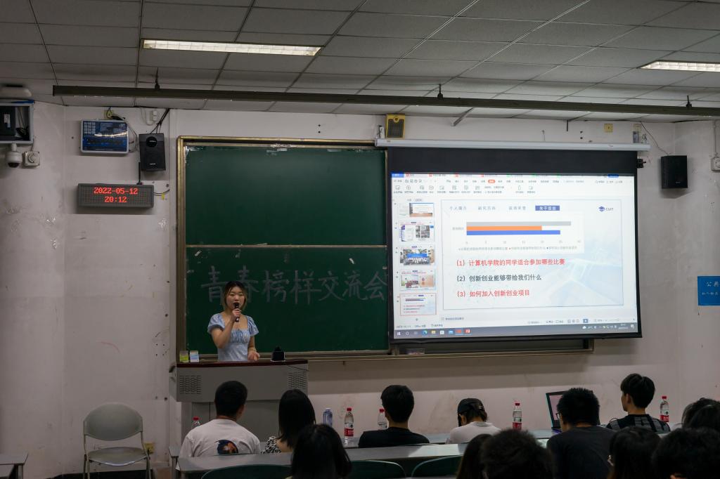 交流会伊始,岳旭媛老师为同学们介绍了“青春榜样”评选活动以及各位获奖同学,并邀请获奖同学上台为大家分享。