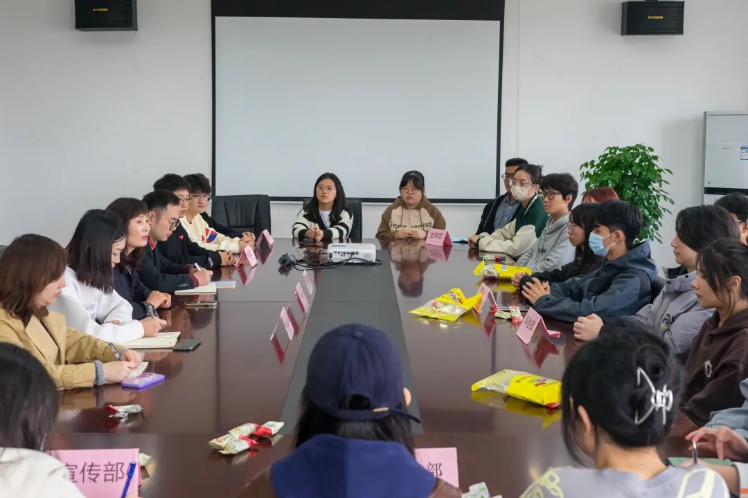 2022年11月4日中午12点30分,金沙集团1862cc2022-2023学年学生干部座谈会在双中心A311准时举行。本次座谈会由团委书记岳旭媛主持,党委书记陈敏、党委副书记厉威成出席,团委、学生会、青志协计算机分会、社团联合会以及研究生会学生干部代表参与座谈会。