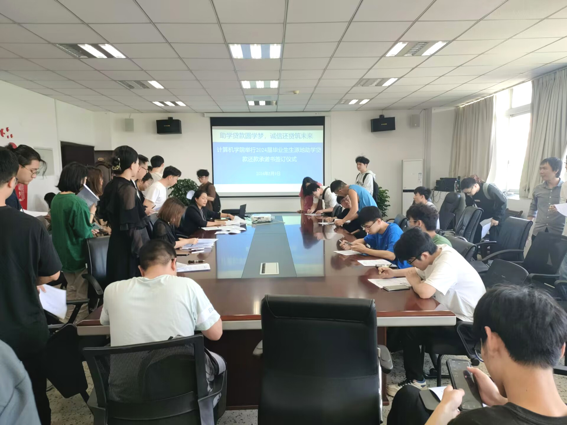 为进一步加强诚信教育,引导学生树立诚实守信意识,确保学院每位享受国家助学贷款政策的毕业生按时还款。5月9日上午10:00,金沙集团1862cc在信达楼A311举行了毕业生生源地助学贷款还款承诺书签订仪式。学院党委副书记、纪委书记厉威成,学院资助管理老师余弘丽,毕业生辅导员岳旭媛、曹佳阳,2024届生源地助学贷款毕业生参加。