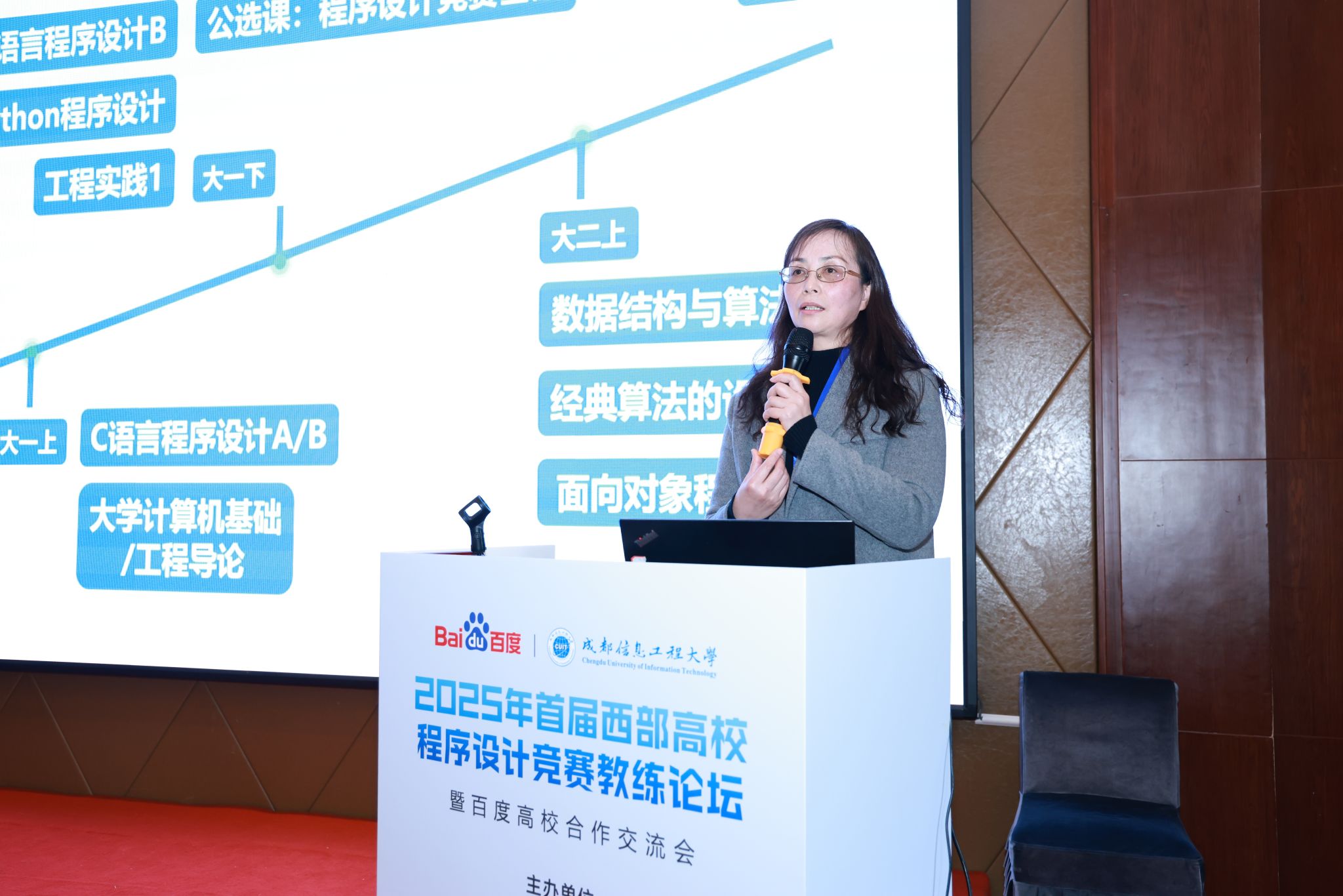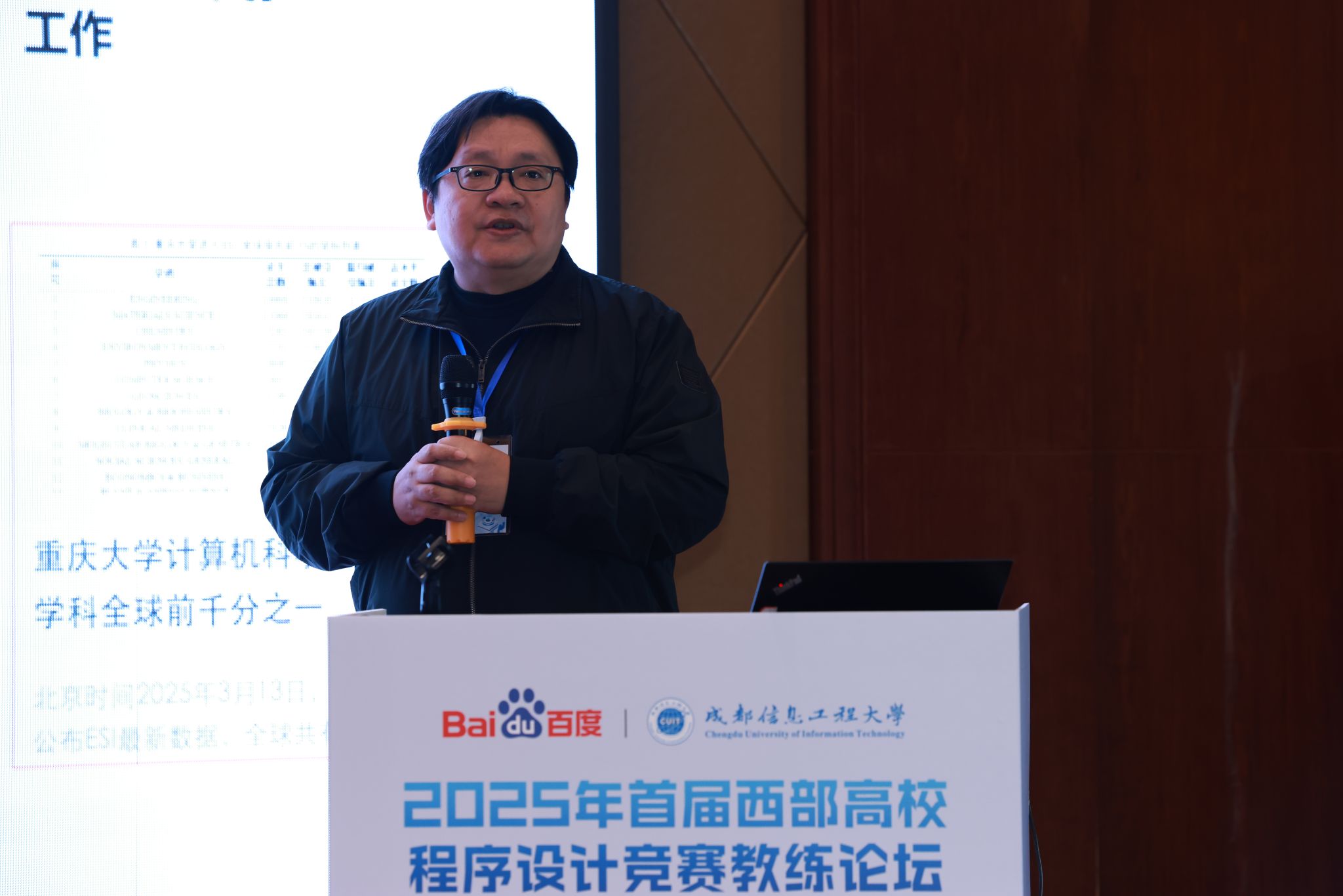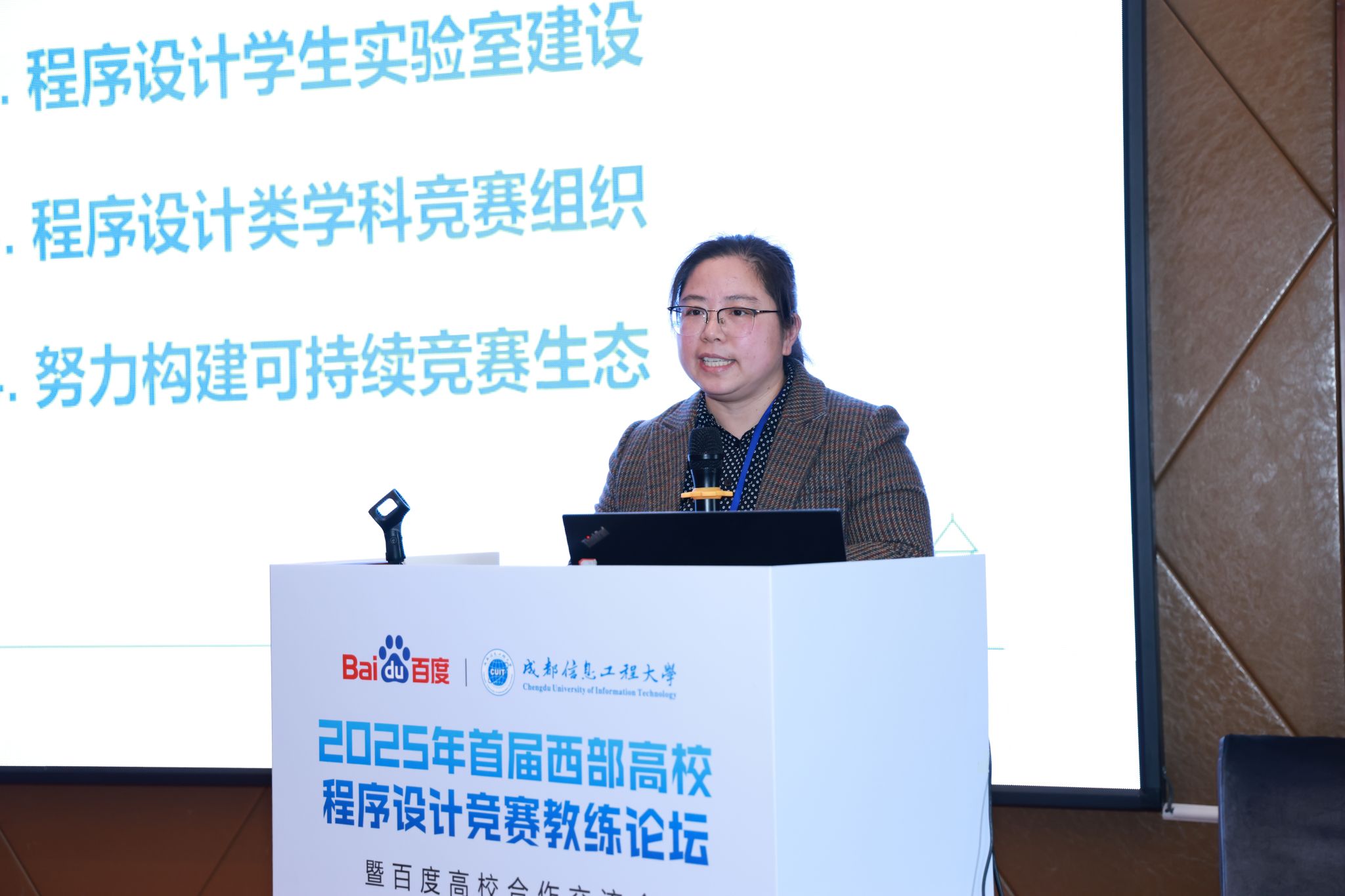 会议期间,多位来自高校和百度的专家,分享了宝贵的经验与前沿观点。重庆大学金沙集团1862cc李佳教授,以“程序设计竞赛驱动的专业核心课程建设与拔尖人才培养”为主题,介绍了在专业课程中推行竞赛式实践教学模式,以及强化核心课程建设的丰富经验。李教授长期致力于程序设计系列课程的教学与建设,带领学生在各类程序设计竞赛中屡获佳绩。