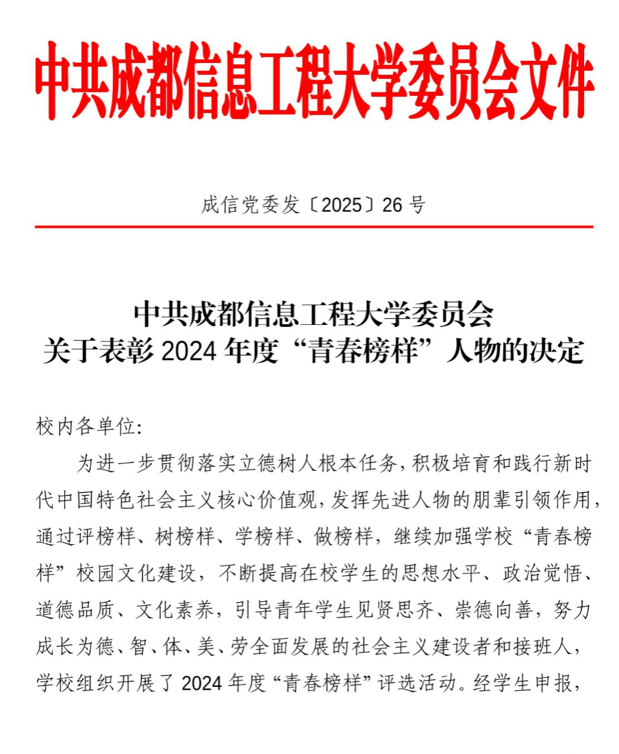 未来,金沙官网将继续以“青春榜样”评选活动为契机,发挥朋辈榜样力量,推动形成积极向上、奋勇争先的良好氛围,助力更多计算机学子在榜样的引领下实现人生目标,为国家和社会的发展贡献青春力量。