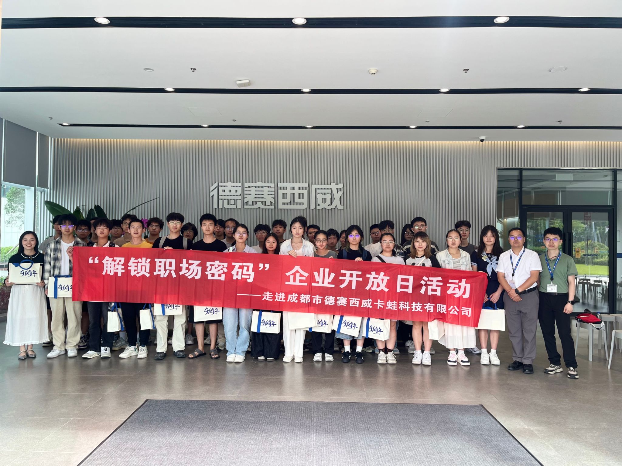 近日,金沙官网组织数媒241、数媒242、计科241班分别走进四川物通科技有限公司和成都市德赛西威卡蛙科技有限公司,开展“解锁职场密码”企业开放日活动。