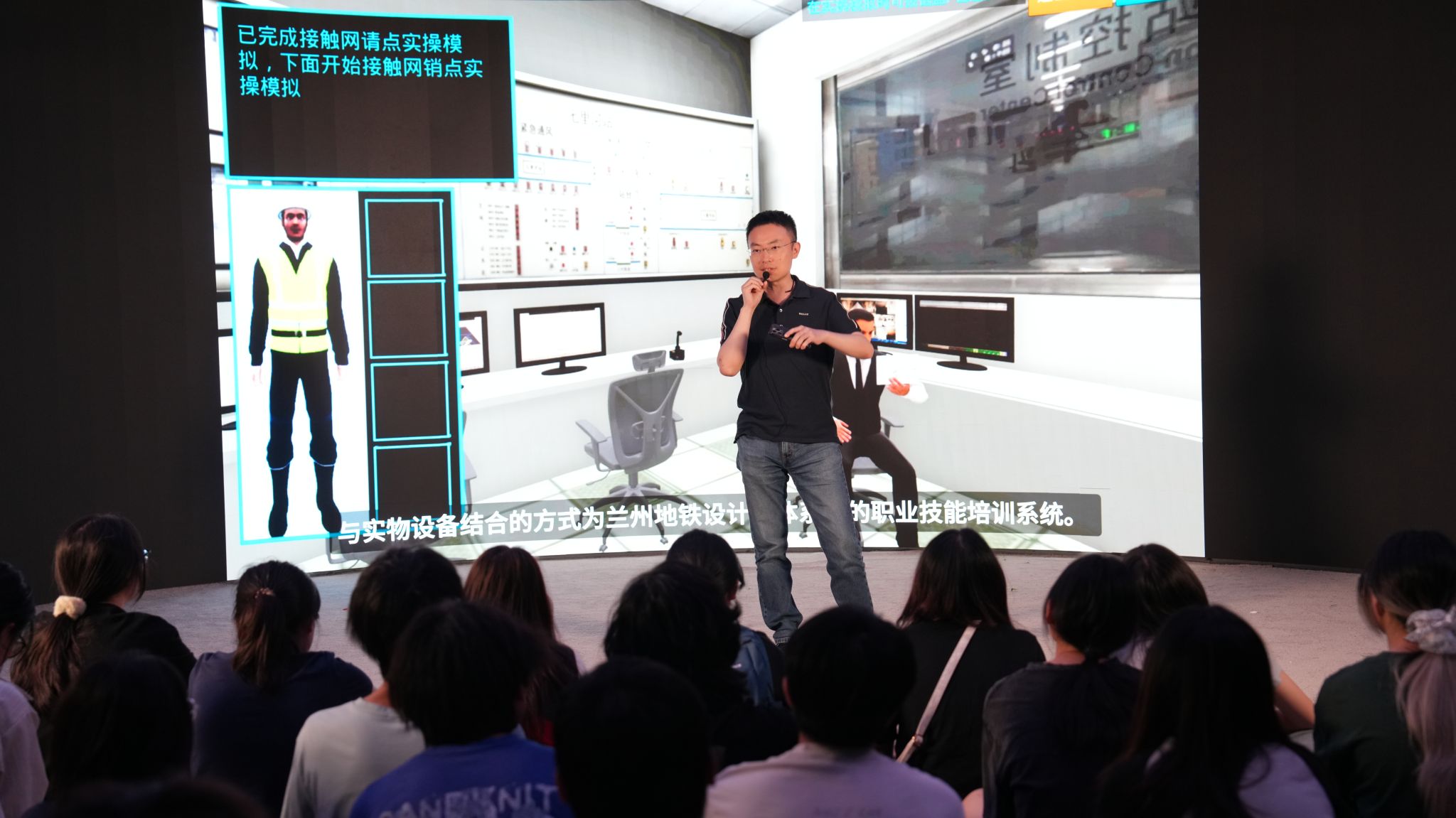 在四川物通科技有限公司的“实验工场”,通过展示“熊猫·1869”虚拟探索项目和“719酿酒中心数字孪生系统”等技术产品,同学们直观感受了数字孪生技术在流程监控、仿真优化中的强大能力。技术专家以AIGC互动数字人为例展现出AI在创意内容生成方面的潜力,让同学们了解了AI在工业设计、产品展示等领域的应用。此外,专家还对AI边缘计算、眼动追踪连接云端计算等前沿概念进行了深入解析。