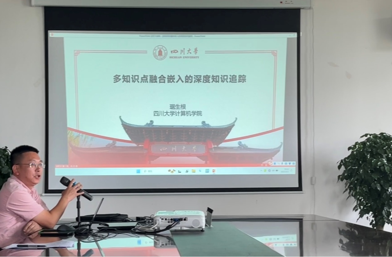 琚生根教授分享的主题是多知识点融合嵌入的深度知识追踪,为研究生同学介绍了深度知识追踪的一些内容及其一些目标应用模型,包括SENet、IRT等模型,指明了现有的知识追踪方法存在的问题和一些改进建议,以及目前琚生根教授团队目前所作的一些课题,增加了同学们对知识追踪和技术的了解与认知,对于提问的同学也给出了自己的见解。