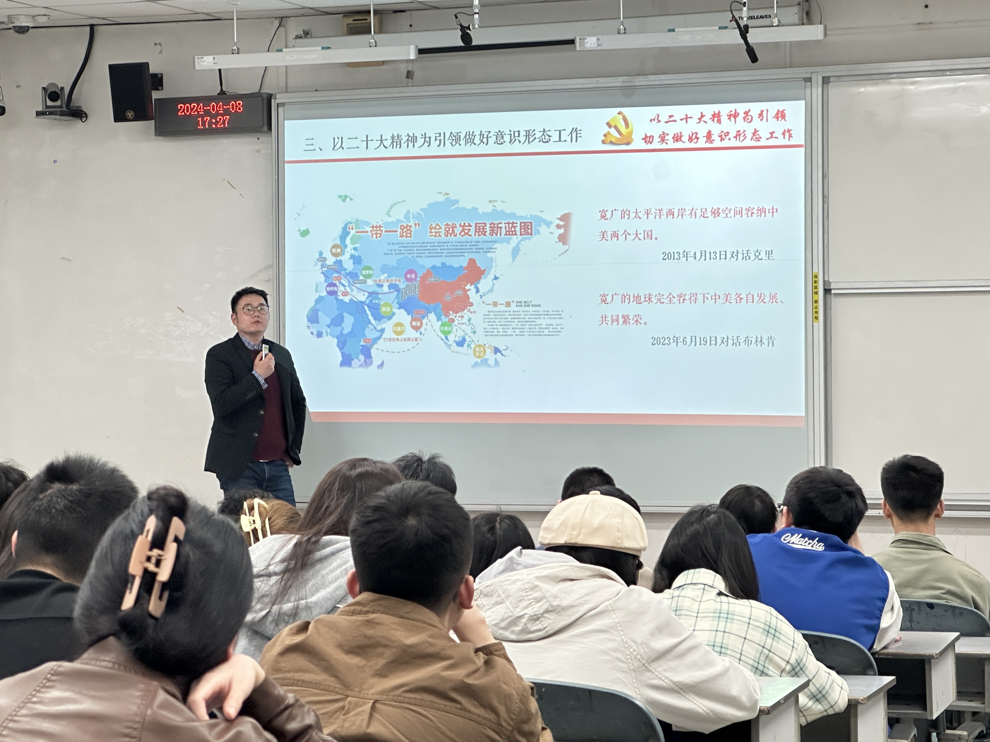 金沙集团1862cc第八期研究生学术沙龙,于4月8日下午在1教H1101顺利开展。本期学术沙龙邀请到了金沙集团1862cc党委副书记厉威成来给大家做主题为“以二十大精神为引领切实做好高校意识形态工作”的分享。