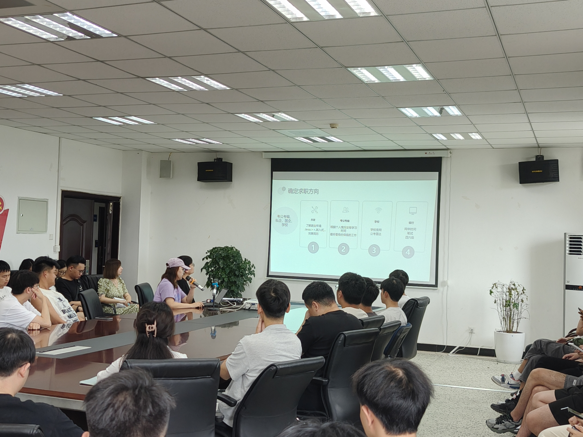 紧接着,陈姣学姐以“就业经验小tips”为主题,详细讲解了确定求职方向的重要性,并介绍了开发、考公考编、学校、银行等多个就业方向的特点和要求。她还特别强调了打破信息差的重要性,推荐了一些实用的求职信息获取渠道,如成信就业、各地人才信息网等,并建议同学们将投递信息整理成表,以便更好地跟踪和管理。