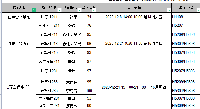 2023-2024-1学期期末考试安排(三)